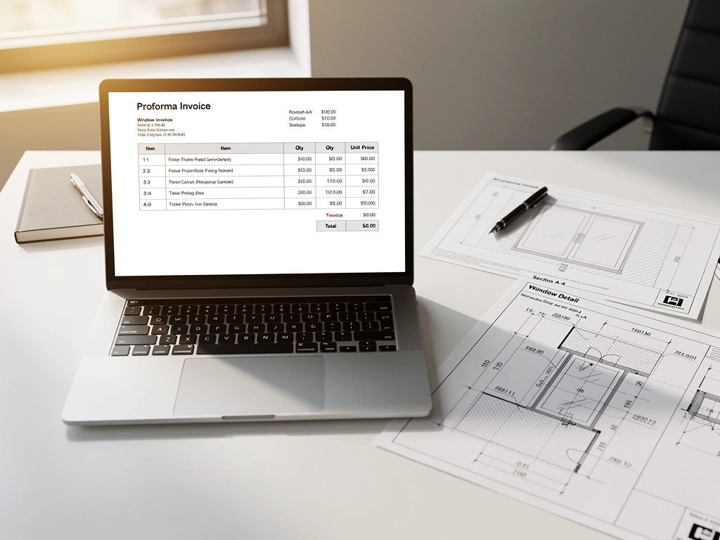 Sie erhalten per E-Mail Ihr finales Angebot: Preis, technische Zeichnungen, Spezifikation jedes Fensters und den geschätzten Liefertermin. Nach Ihrer Bestätigung stellen wir die Proforma-Rechnung aus.